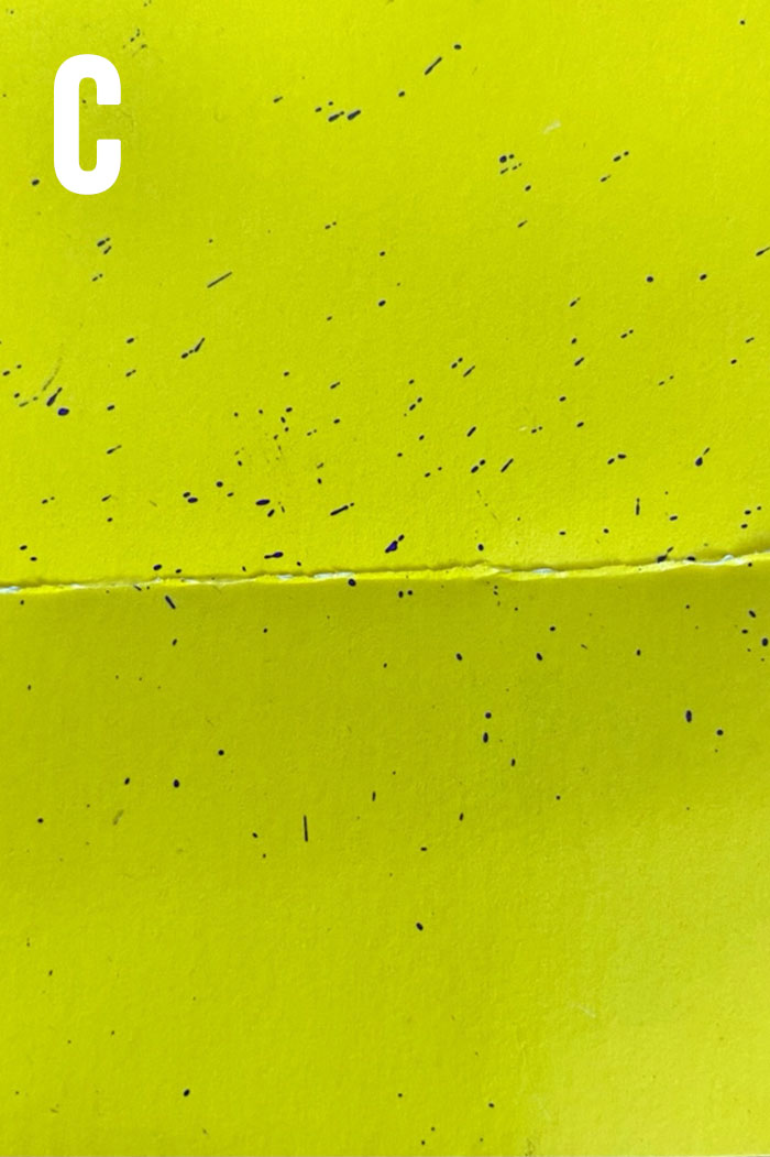 Figure 4 Spray card coverage following applications. (A) Spray cards were wrapped around individual wheat heads and clipped at the base. (B) Spray card coverage following the ground rig application at a standard rate of 15 GPA and (C) Spray card coverage following the drone application at 3 GPA.